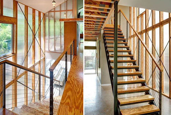 4、OSB做出來的家具,書柜強度很高,不像纖維板那樣書放多了以后就產生形變,OSB的家居不易變形,跟原木都有的一拼。它的紋理花色還很好看,不像貼木皮家具那樣千篇一律。