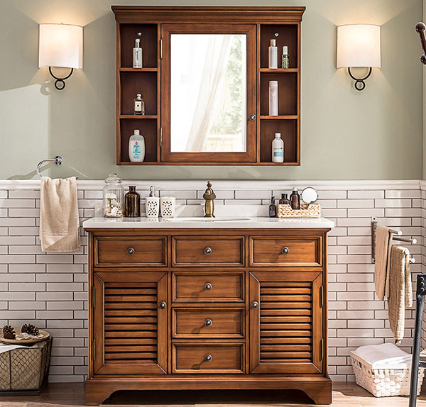 一、整體浴室柜種類實木浴室柜