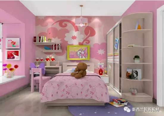 女孩子的房間相對于男孩子在配色上更適合暖色,如紅色、粉色等。這樣更容易營造出小公主的姿態(tài)。