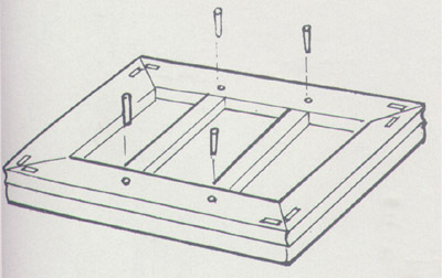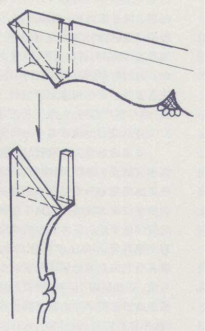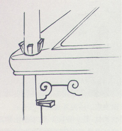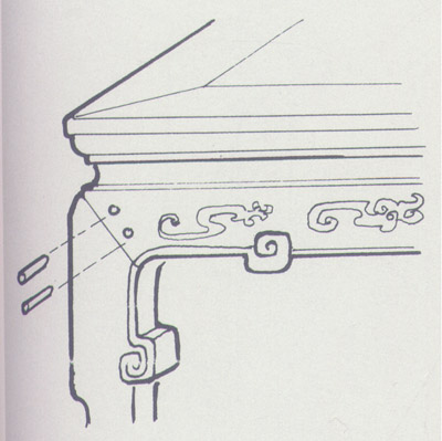 透銷(圖)是在栽銷的基礎上,使銷子延長并通透于其一板材的中心,多見于大型的鐵力、紫檀等床案厚重的牙板與大邊的拍合,十分堅固。