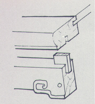 插銷(圖)鏡框、玻璃燈籠、碧紗櫥等多見用這種銷法,制做要求精致,起線并暗藏于線條之中。