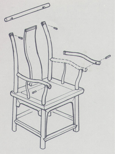 圈口穿銷(圖)是一種比較少見的結構,做工十分講究,明代黃花梨萬歷柜及圈椅上應用,可作鑒定斷代的依據(jù)。