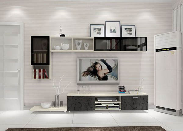大留白的電視背景墻很干凈的感覺,下面放一些常用的物品也不妨礙看電視。